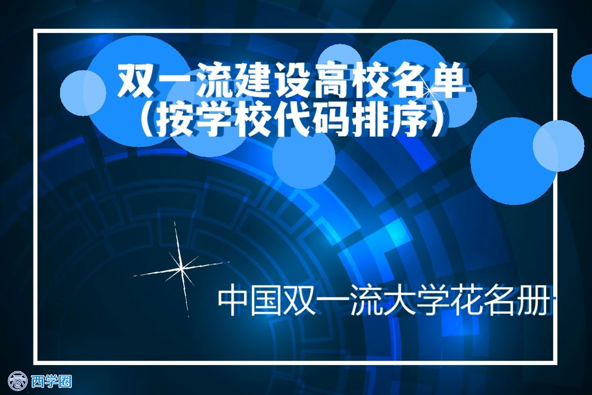 | 双一流”建设高校名单(按学校代码排序) 一、一流大学建设高校42所 1. A类36所 北京大学、中国人民大学、清华大学、北京航空航天大学、北京理工大学、中国农业大学、北京师范大学、中央民族大学、南开大学、天津大学、大连理工大学、吉林大学、哈尔滨工业大学、复旦大学、同济大学、上海交通大学、华东师范大学、南京大学、东南大学、浙江大学、中国科学技术大学、厦门大学、山东大学、中国海洋大学、武汉大学、华中科技大学、中南大学、中山大学、华南理工大学、四川大学、重庆大学、电子科技大学、西安交通大学、西北工业大学、兰州大学、国防科技大学 2. B类6所 东北大学、郑州大学、湖南大学、云南大学、西北农林科技大学、新疆大学 二、一流学科建设高校95所 北京交通大学、北京工业大学、北京科技大学、北京化工大学、北京邮电大学、北京林业大学、北京协和医学院、北京中医药大学、首都师范大学、北京外国语大学、中国传媒大学、中央财经大学、对外经济贸易大学、外交学院、中国人民公安大学、北京体育大学、中央音乐学院、中国音乐学院、中央美术学院、中央戏剧学院、中国政法大学、天津工业大学、天津医科大学、天津中医药大学、华北电力大学、河北工业大学、太原理工大学、内蒙古大学、辽宁大学、大连海事大学、延边大学、东北师范大学、哈尔滨工程大学、东北农业大学、东北林业大学、华东理工大学、东华大学、上海海洋大学、上海中医药大学、上海外国语大学、上海财经大学、上海体育学院、上海音乐学院、上海大学、苏州大学、南京航空航天大学、南京理工大学、中国矿业大学、南京邮电大学、河海大学、江南大学、南京林业大学、南京信息工程大学、南京农业大学、南京中医药大学、中国药科大学、南京师范大学、中国美术学院、安徽大学、合肥工业大学、福州大学、南昌大学、河南大学、中国地质大学、武汉理工大学、华中农业大学、华中师范大学、中南财经政法大学、湖南师范大学、暨南大学、广州中医药大学、华南师范大学、海南大学、广西大学、西南交通大学、西南石油大学、成都理工大学、四川农业大学、成都中医药大学、西南大学、西南财经大学、贵州大学、西藏大学、西北大学、西安电子科技大学、长安大学、陕西师范大学、青海大学、宁夏大学、石河子大学、中国石油大学、宁波大学、中国科学院大学、第二军医大学、第四军医大学 |